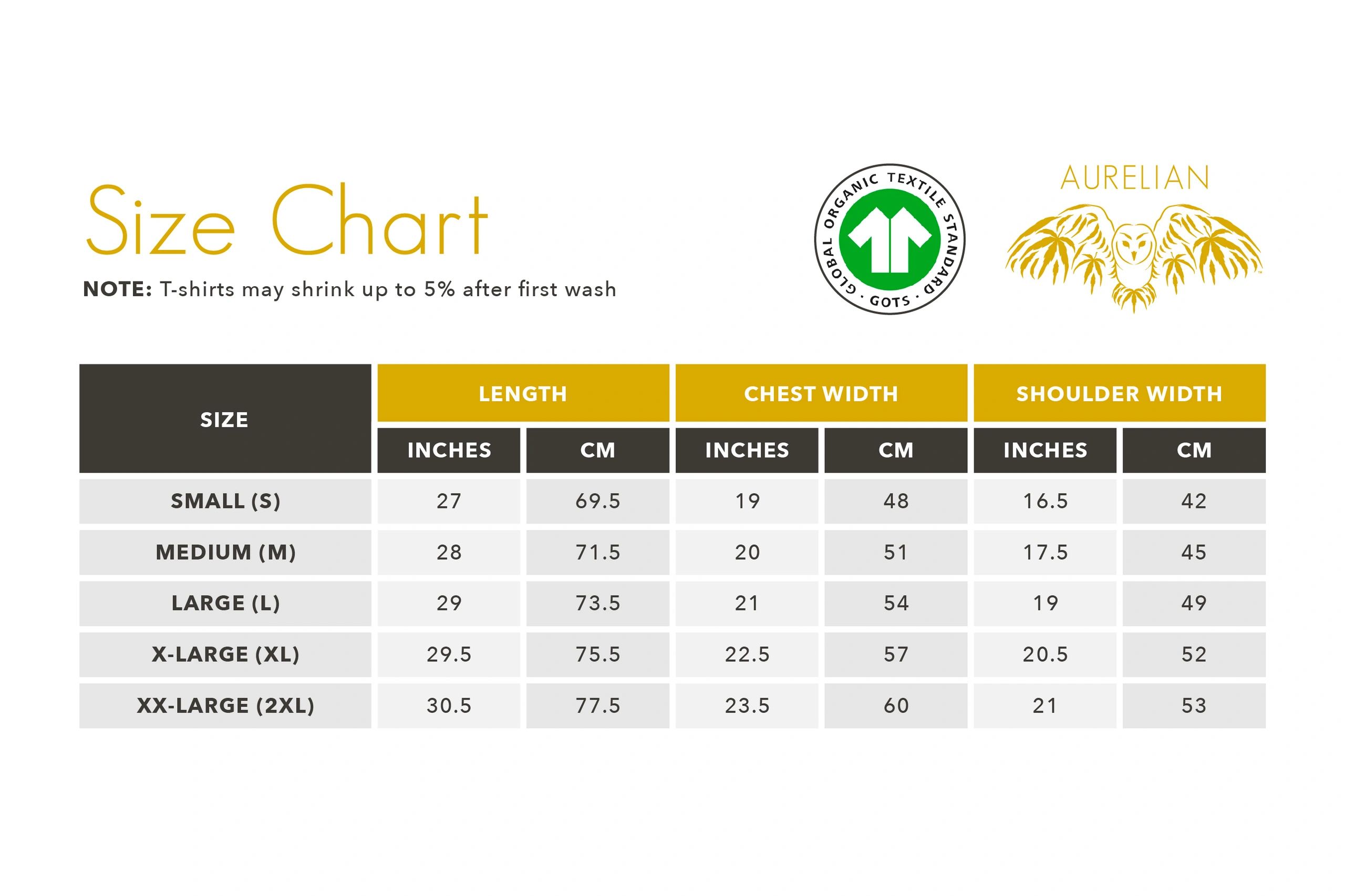 To ensure you get the perfect fit for your AURELIAN hemp t-shirt, follow these simple steps to measure key areas: length, chest width, and shoulder width.